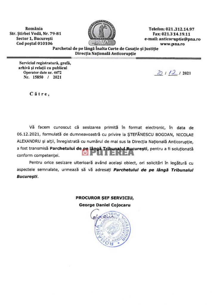 SESIZARE depusă la DNA ca urmare a unui articol publicat de Puterea.ro! (FOTO )