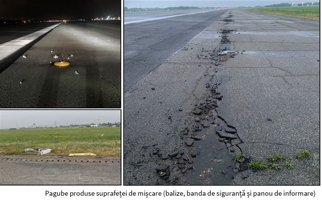 Aceste pagube sugerează că trenul de aterizare al aeronavei a intrat în contact cu elemente ale infrastructurii pistei în timpul decolării, indicând o posibilă ieșire parțială de pe axul pistei sau o coborâre accidentală în banda de siguranță.