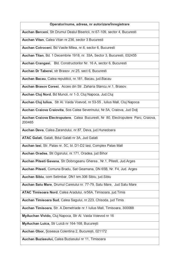 Lista magazinelor de unde a fost retras produsul este următoarea: