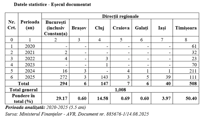 Datele privind distribuția controalelor evidențiază un dezechilibru major între punctele teritoriale. Constanța, aflată în aria de competență a Regionalei București, a înregistrat doar 14 notificări, reprezentând 1,7% din total. Prin contrast, Timișoara concentrează 508 notificări, adică 50,4% din întreaga activitate de control, iar Bucureștiul însumează 280 notificări, respectiv 27,5%. Raportul dintre Timișoara și Constanța este de aproximativ 1 la 30, ceea ce indică faptul că în Constanța se realizează de treizeci de ori mai puține controale.