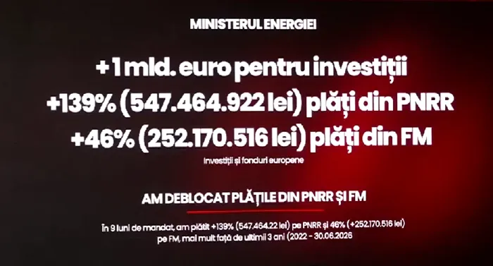 În finalul intervenției, Bogdan Ivan a revenit la tema investițiilor și a anunțat un nou pachet de proiecte acceptate la nivel european. „În aceste nouă luni noi am adus 1.000.000.000 de euro în România. De asemenea, în decembrie anul trecut am aplicat pentru proiecte de 1.000.000.000 de euro din Fondul pentru Modernizare, care au fost acceptate de către Comisia Europeană”, a spus ministrul.