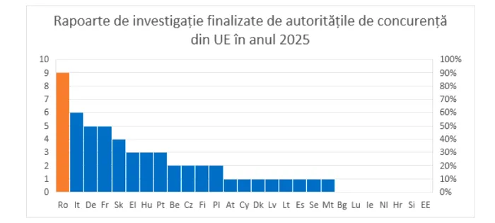 „În 2025, am reușit să gestionăm eficient provocările și să fim inovativi în abordarea cazurilor, prin soluții care au consolidat capacitatea instituțională. Am analizat un număr record de concentrări economice, am finalizat investigații complexe, inclusiv prima pe piața forței de muncă, și am aplicat sancțiuni semnificative. La nivelul UE suntem pe primul loc ca număr de cazuri soluționate pentru posibile încălcări ale TFUE”, a declarat Bogdan Chirițoiu, președintele Consiliului Concurenței.
