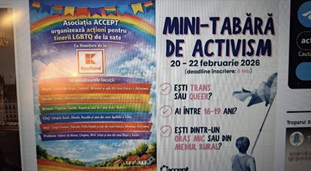 Cel mai mare retailer de pe piața românească, Kaufland, a anunțat că finanțează organizarea, în perioada 20-22 februarie 2026, de mini-tabere de activism pentru tinerii LGBT de la sate (vezi FOTO).