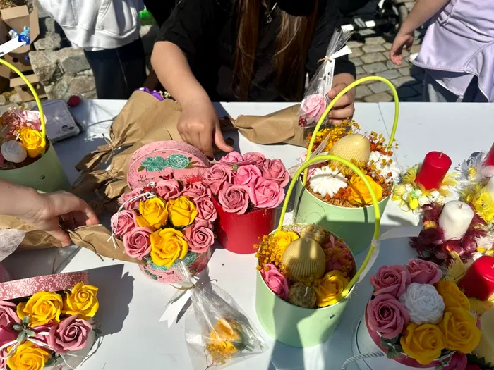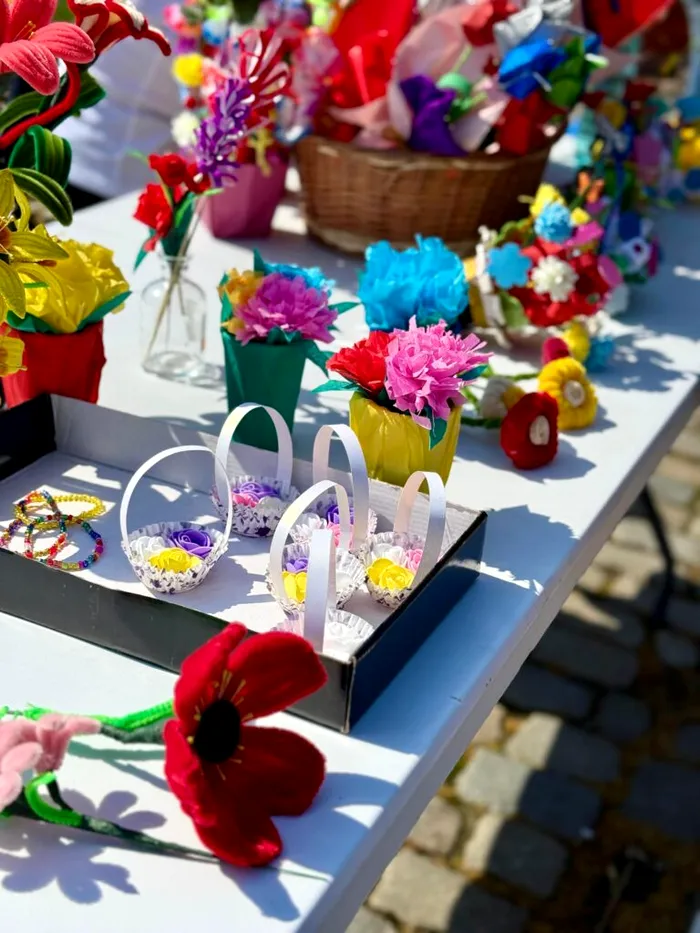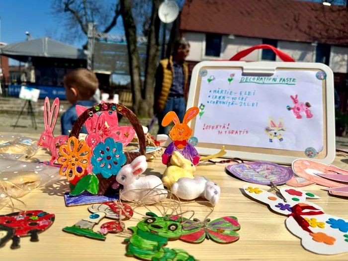 Munca copiilor nu s-a oprit doar la școală. Acasă, ajutați de părinți, au pregătit și alte desene, ornamente de primăvară și chiar prăjituri, pe care le-au adus la evenimentul din Parcul Mogoșoaia.
