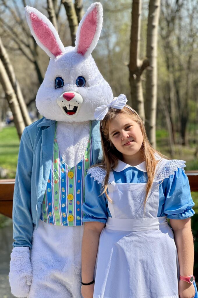 Activitățile creative au fost însoțite și de momente de joacă. Distracția a fost asigurată de doi invitați speciali: Alice și Iepurașul de Paști, care s-au jucat cu cei mici și le-au oferit amintiri de neuitat. Cei care au dorit, au făcut și fotogratii alături de cele două personaje de poveste.