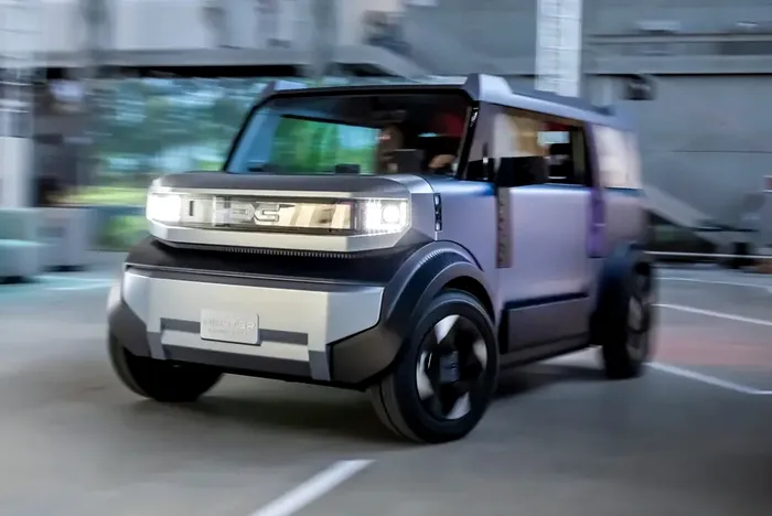 Dimensiunile boxy și ferestrele verticale maximizează spațiul interior și permit înlocuirea geamurilor rabatabile cu glisante, economisind astfel loc pentru cotiere și spații de depozitare integrate în uși. Interiorul este aerisit și minimalist, cu scaune din plasă ușoară, volan compact și un ecran de dimensiuni reduse pentru vitezometru, alături de suporturi modulare YouClip pentru accesorii precum boxe portabile.