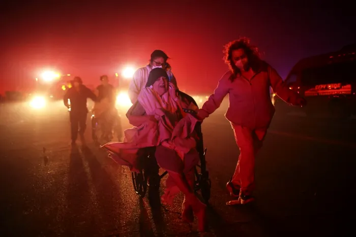 Flăcările care au izbucnit marți seară în apropierea unei rezervații naturale de la poalele dealurilor de nord-est ale LA s-au răspândit atât de repede, încât personalul unui centru pentru bătrâni a fost nevoit să împingă zeci de rezidenți în scaune cu rotile și paturi de spital, pe stradă, către o parcare. Ei au așteptat în pijamale, în timp ce jarul cădea în jurul lor, până când ambulanțele, autobuzele și camionete de construcții au sosit pentru a-i duce în siguranță.