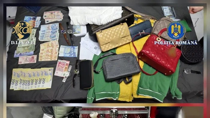 „În urma perchezițiilor efectuate, au fost descoperite și ridicate bijuterii (inele, brățări, coliere) și ceasuri de lux, o parte dintre acestea fiind inscripționate cu numele unora dintre persoanele vătămate, monede, obiecte de vestimentație, genți, 71.000 de euro, 12.000 de USD, 300 de franci elvețieni, dispozitive de stocare a datelor, două pistoale cu gaze iritant-lacrimogene, 74 de cartușe cu gaz, un pistol cu capse, un pistol și 55 de cartușe, deținute ilegal, arme albe, precum și alte mijloace de probă, ce urmează să fie puse la dispoziția autorităților judiciare germane”, au precizat reprezentanții poliției.