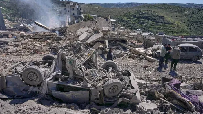 Oamenii verifică locul în care atacurile aeriene israeliene au lovit mai multe case în Sir al-Gharbiyeh, Liban, duminică. Sursa: CNN