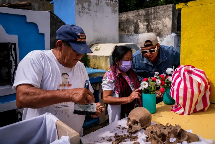 Mauro Canul, ofițer în marina mexicană, a vorbit cu blândețe către oasele bunicului său în timp ce le curăța: „Nu te-am uitat și nici nu intenționez să o fac.” El spune că bunicul i-a apărut în vis, cerându-i mai multă atenție.