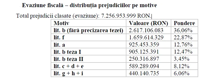 Total prejudicii clasate (evaziune): 7.256.953.999 RON.
