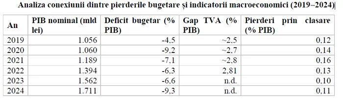 Analiza conexiunii dintre pierderile bugetare și indicatorii macroeconomici (2019–2024)