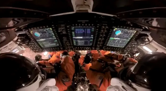 După cum se arată într-o imagine NASA, cei patru astronauți ai misiunii Artemis 2 și-au pus costumele spațiale portocalii în pregătirea întoarcerii pe Pământ. Aceste costume îi vor proteja în caz de incident sau depresurizare a navei spațiale.