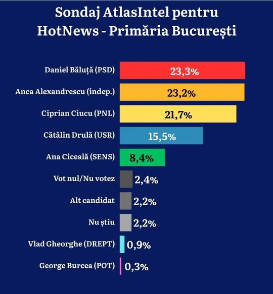 Sondaj AtlasIntel: Bucureștiul electoral, la cuțite. Băluță și Alexandrescu, umăr la umăr