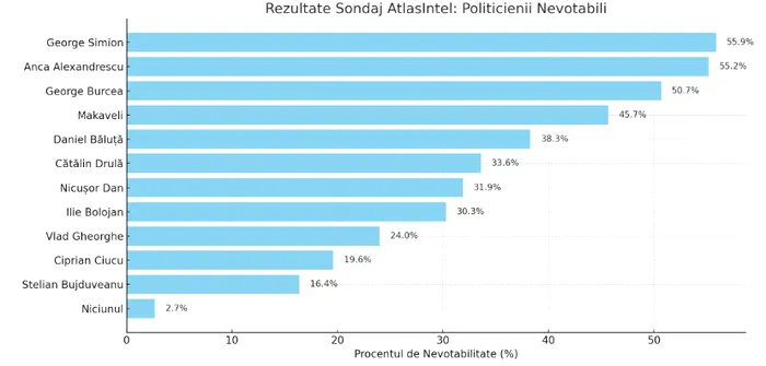 AtlasIntel ne propune un exercițiu interesant, în cel mai recent sondaj. Întrebarea e simplă și brutală: „Pentru care dintre politicienii listați mai jos nu ați vota în niciun caz?” Nu „pe cine simpatizați”, nu „pe cine ați alege dacă duminică ar fi alegeri”, ci exact opusul: cu cine refuzați să vă murdăriți buletinul. De aici începe partea cu adevărat relevantă.